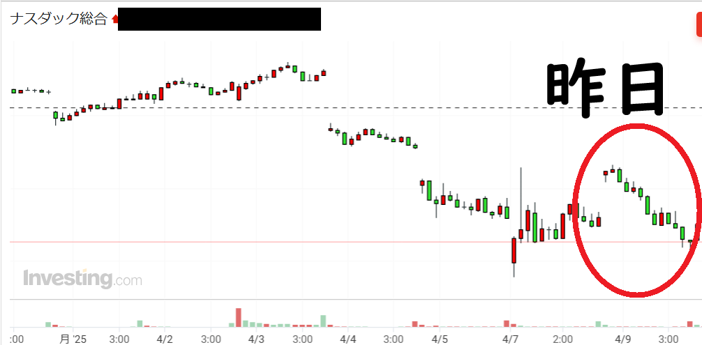 昨日今日勝負していた理由はフェイクニュースが切っ掛けです。関税90日停止の初報はフェイクニュースと発表されていましたが、日本の政府や企業であっても否定からの肯定パターンはよく見ますし、90日間という妙にリアルな日数が気になり、正式な発表場くるのではと思いました。リバウンドするまで毎晩勝負し続けようと決意しました。