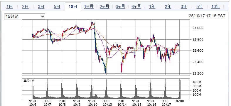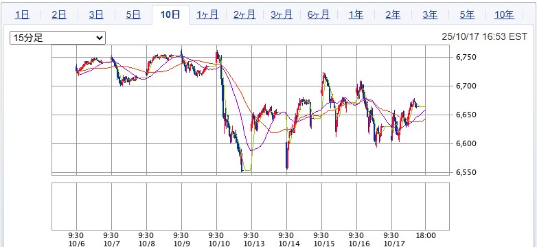今週はトランプ政権vs中国問題が再燃したり、高市早苗自民党総裁絡みで各党の思惑や総理大臣が誰になるのかなどの思惑相場となりアメリカ相場日本相場共に乱高下しました。終わってみれば先週比はアメリカ微上げ、日経平均は微下げという感じでした。
