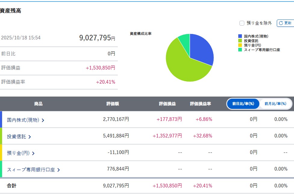 SBI・V・S&P500インデックス・ファンド | 230,252.85円 | +36,652.24円 | +18.93% | — |