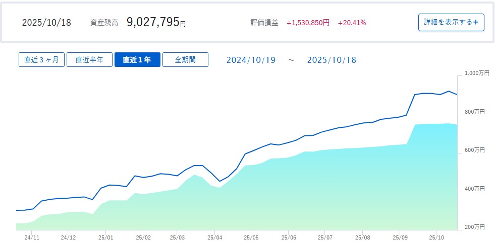 SBI・V・S&P500インデックス・ファンド | 636,424.09円 | +303,156.68円 | +90.96% | — |