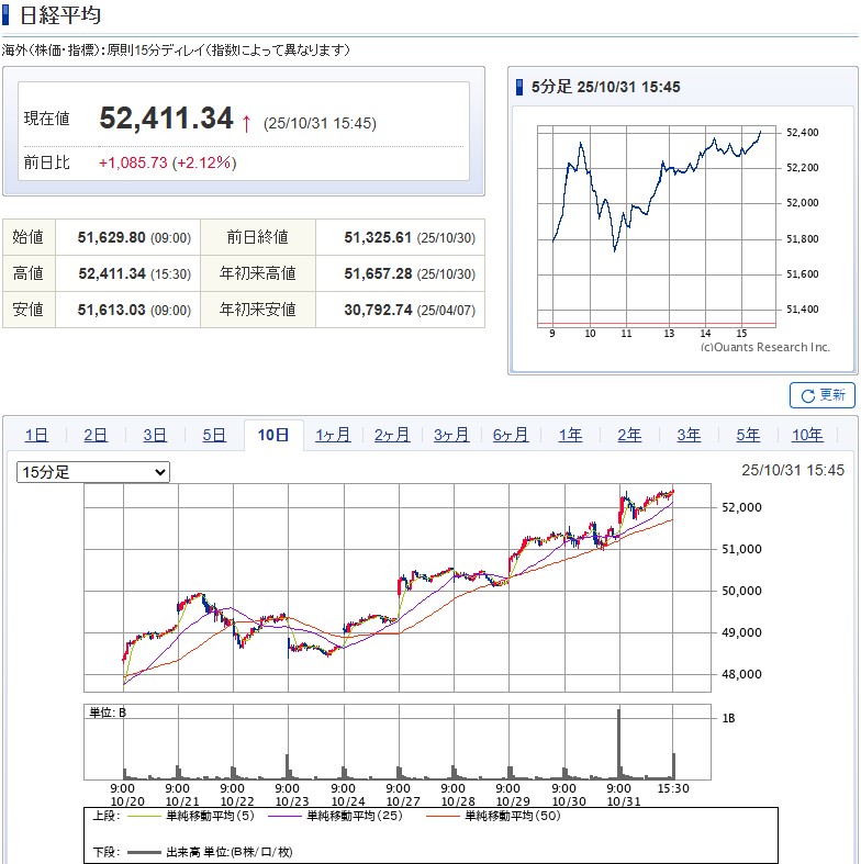 投資信託の方では日経225やアメリカ指数なども保持してます。株式指数が上がる事で資産に恩恵はあるので、現金ポジションを多めにしつつ様子見し買い時を探す感じです。