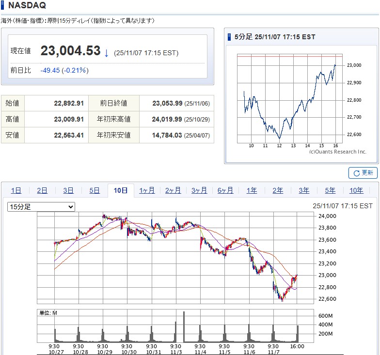 金曜日の昼間は日経平均やダウ先物がリバウンド気味だったり気が気じゃなかったけれど、スイング目線なので週明けか11月中か、半導体指数が高値更新しない限りは持ち越す予定でした。