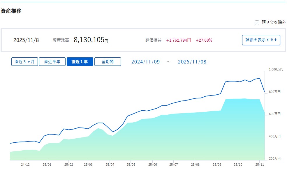 | SBI・iシェアーズ・日経225インデックス・ファンド | 462,841.25円 | +97,328.83円 | +26.63% | — |