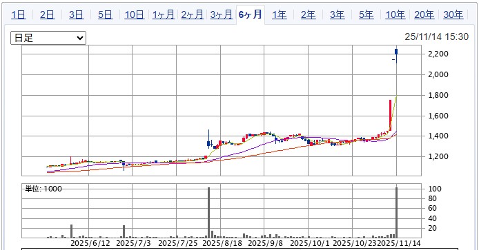 | KOZOHD | 2,600円 | +800円 | +44.44% | 0% |