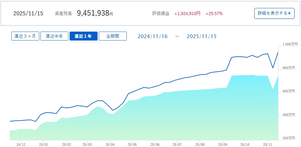 なんと口座残高が最高値を更新していました(11月12日時点)。