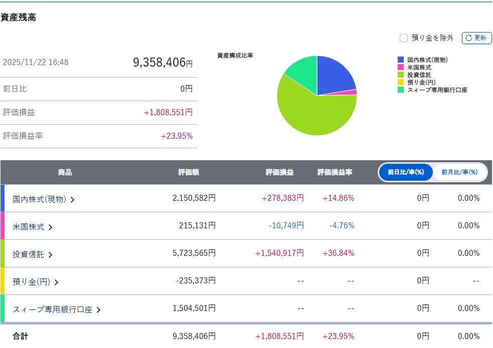 | SBI・V・S&P500インデックス・ファンド | 659,083.74円 | +325,816.34円 | +97.76% | — |
