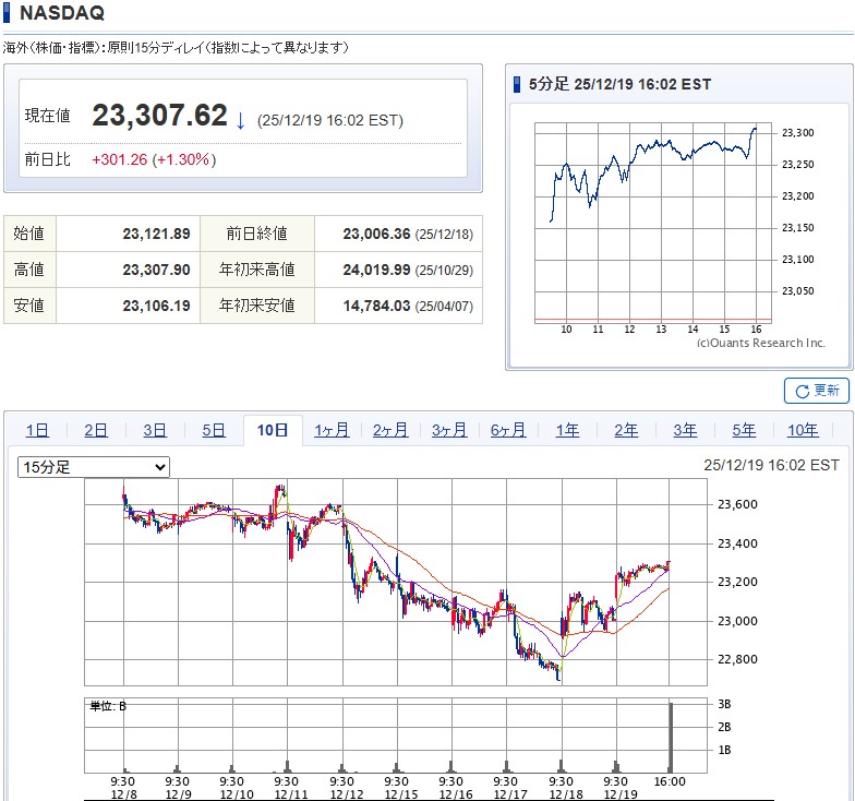 しかし、決定後の植田総裁の会見が「追加利上げを急がない」ハト派姿勢と受け止められ、市場は「アク抜け」感から急反発。為替が1ドル157円台へ円安に振れたことも追い風となりました。米国でもインフレ鈍化を背景にハイテク株が堅調でした。週初の下落を埋め、年末相場に向けて投資家心理が改善して取引を終えています。