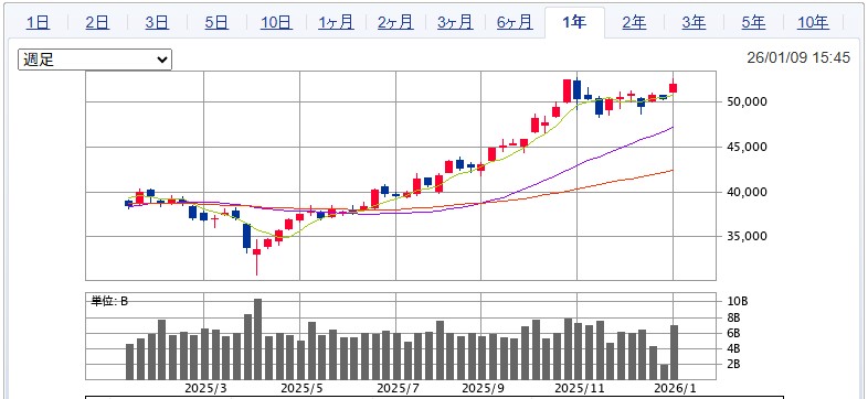 利が乗っても欲をかきすぎて利確できず結局薄利で売ってしまうという経験から、11月頃からスイング枠だけは年末に向けて徐々にポジションを減らし始めた。11月に日経平均5万円をつけてから、上値を突破できずヨコヨコ相場が続いていたからだ。