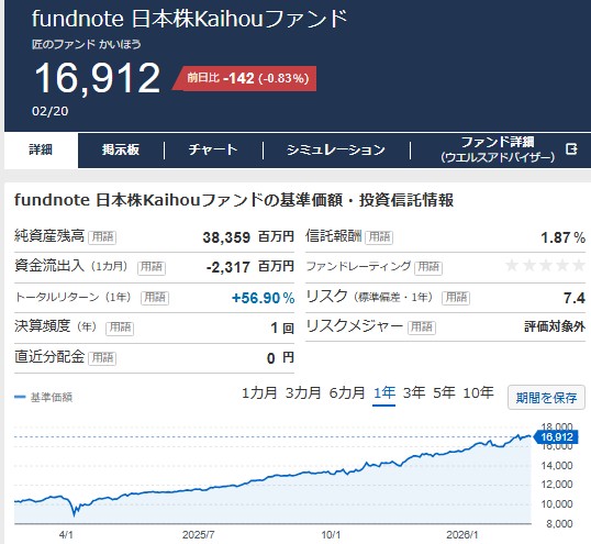 正式名称はfundnote 日本株Kaihouファンド