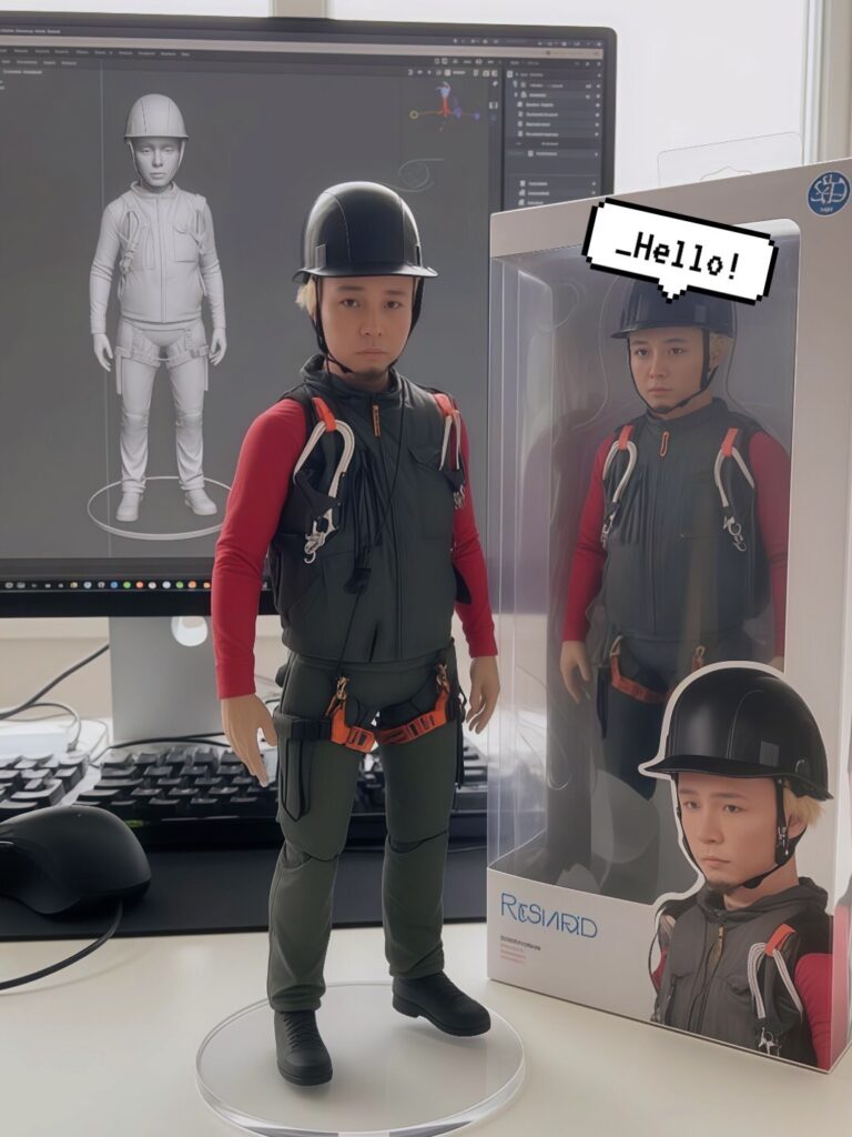 この画像が送られる前に、パンさん自身の画像が送られてきたんだけど、その時は「数年前に流行っていた自身のフィギュア化のクオリティこんな上がってたのか!」って思ってた。それ以前に、「パンさんこういうの興味あったのか、流石お金持ち」と……。その直後に自分のフィギュア画像が送られてきたもんだから驚いた。なにせ自分は体をスキャンした事が無いのだから。そこでようやくAIで作った画像だと知らされた。