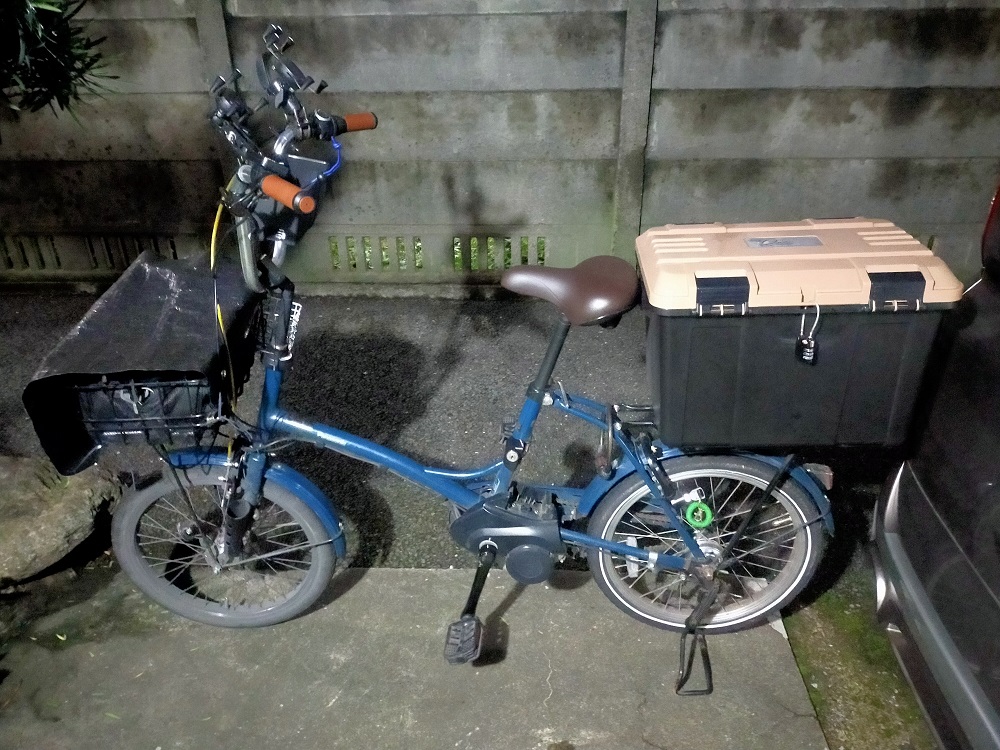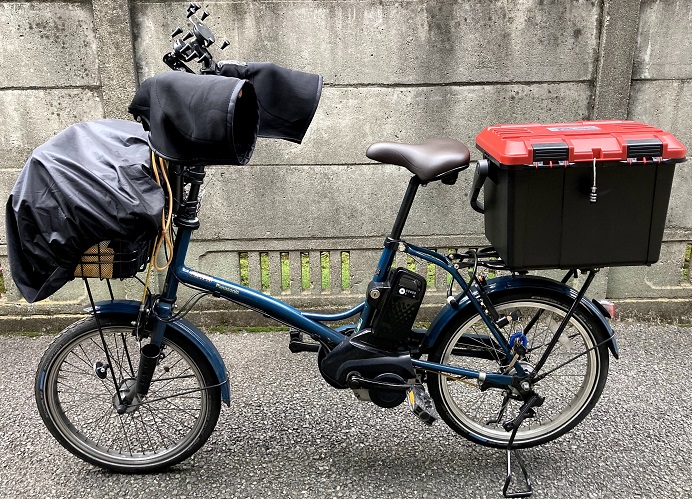 必要最低限の労力で最大限の仕事効率をモットーにしているので、電動アシスト自転車以外の選択肢は無し。アシスト恩恵を最大限に受けるため常にフルパワーモードで稼働